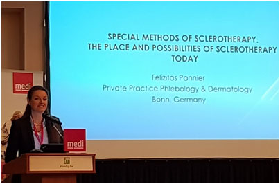 Dr. FelizitasPannierсделала доклад: «Специальные методы склеротерапии. Место и возможности склеротерапии». Большое внимание было уделено комбинированным методикам: